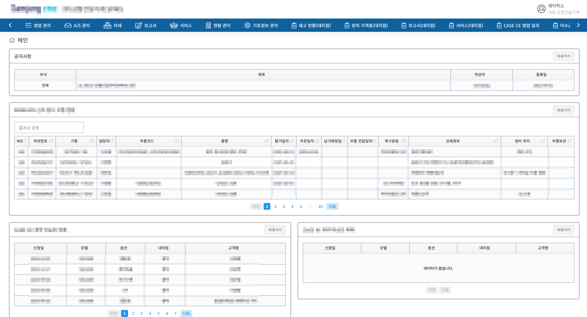 농기계 업체의 전반적인 영업 및 자산 관리를 위한 통합 CRM 시스템